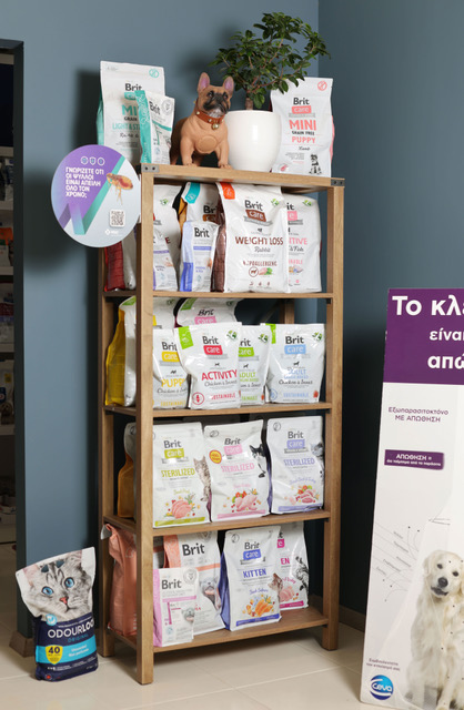 Το κτηνιατρείο μας διαθέτει ένα οργανωμένο εμπορικό τμήμα με τροφές και φάρμακα για το σκύλο και τη γάτα σας